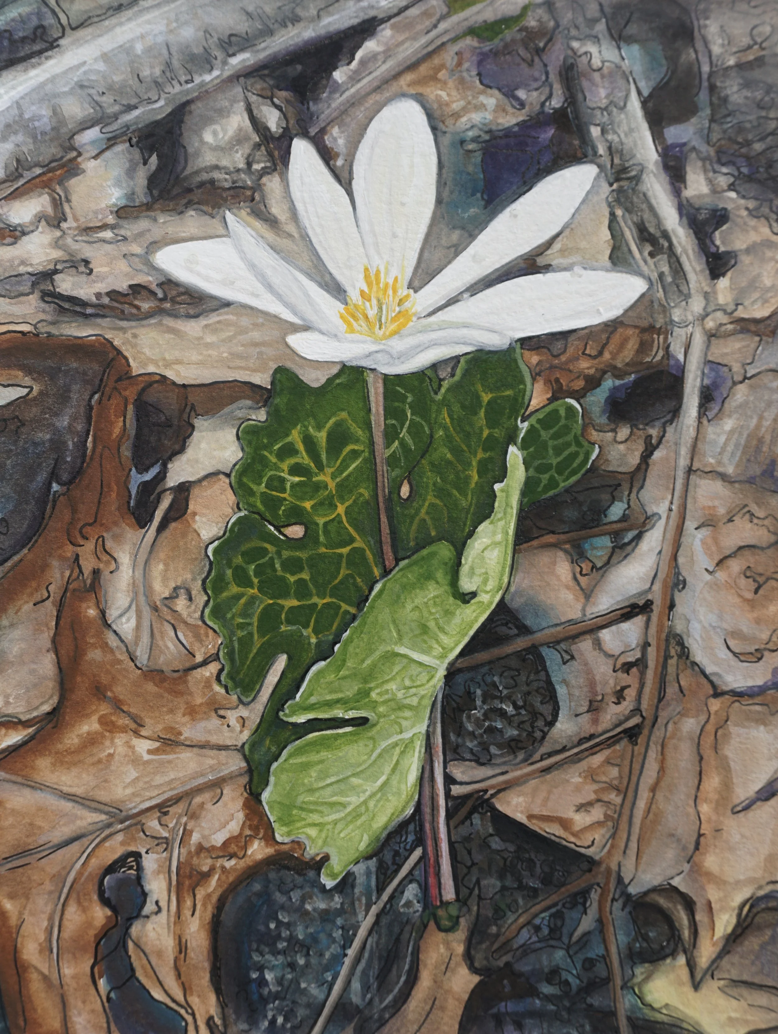 Bloodroot Beauty, 2025, gouache, 6"x8"